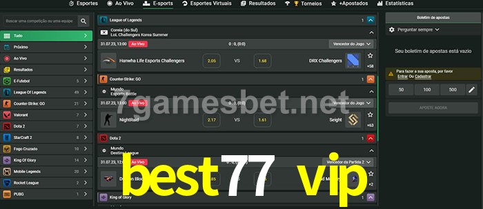 O best77 vip oferece uma grande seleção de opções de apostas em e-sports com probabilidades competitivas